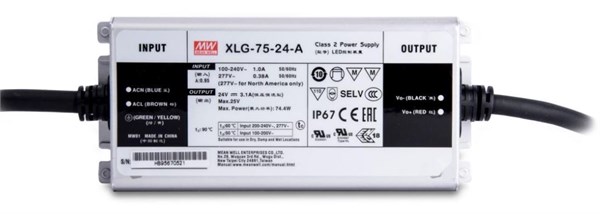 Ac/dc led driver mean well xlg-75-24a ip67 output 75w 24v 3,1a - 100-305vac - ( conf. 24pz ) - garanzia 5 anni