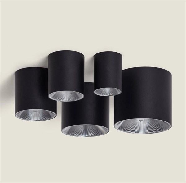Faretto cilindro nero da soffitto led ip20 7w 220-240v cct selezionabile 2700k-3300k-4000k 60° 770lm ik05 - materiale alluminio - ø75x95mm - driver lifud - garanzia 3 anni