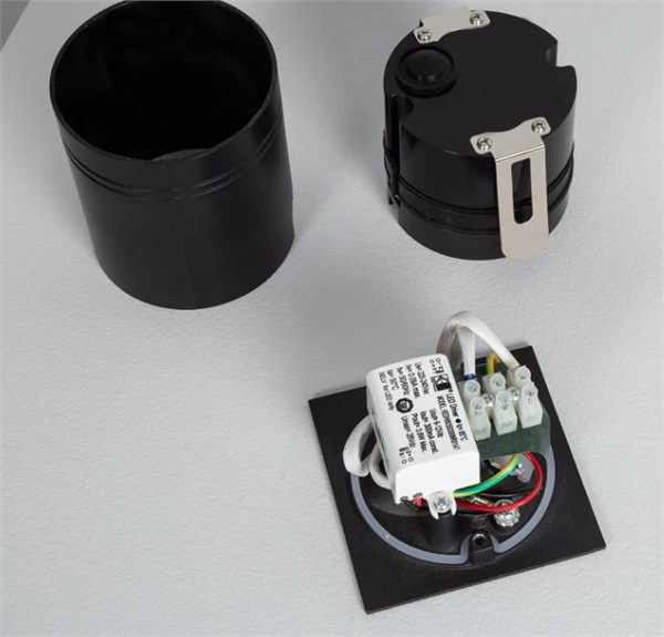 Segnapasso da incasso quadrato nero con ottica asimmetrica 2w natural 4000k 220-240vac 160lm 60° ip65 cri>80 80x80x87mm - incasso ø76mm - materiale alliminio - garanzia 3 anni