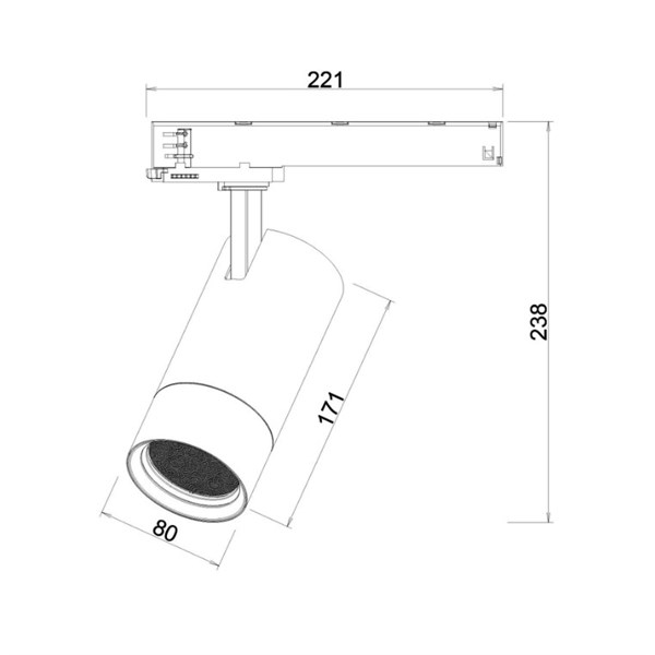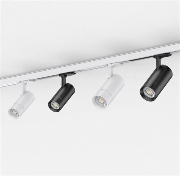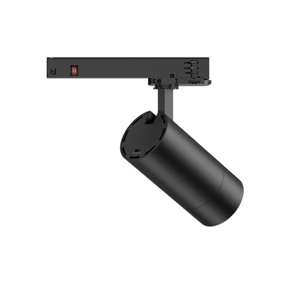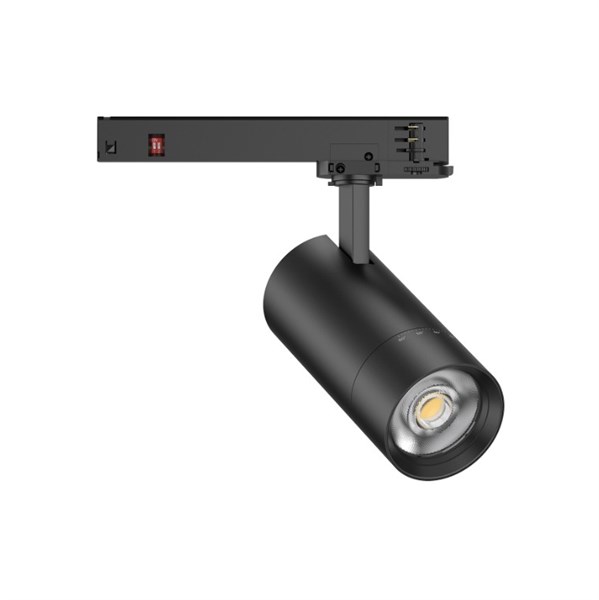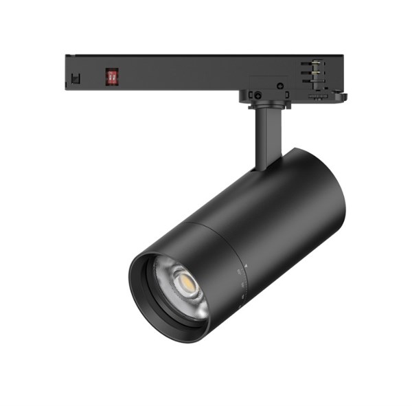Faretto binario trifase nero led cob 20w-35w cct selezionabile 3000k-3500k-4000k 220-240vac - ottica zoom 24°>60° - 3100lm (20w) / 3850lm (35w) - ip20 cri>90 - ø80x171x238mm - garanzia 5 anni