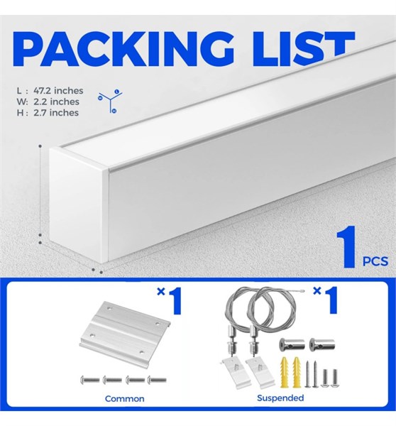 Lampada lineare led a sospensione in alluminio bianco 150cm 50w ip20 cct selezionabile 3000k-4500k-6000k 85-265vac 110° 5000lm cri>80 - dimensioni 1512x55x75mm - driver lifud flicker free - possibilit+ç di connettere piu' pezzi fino ad un massimo di 8pz - garanzia 3 anni
