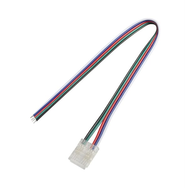 Pacco 10pz - connettore trasparente per strip led cob rgb+w ip20 da 12mm - con cavo l.250mm - 5 pin - garanzia 2 anni