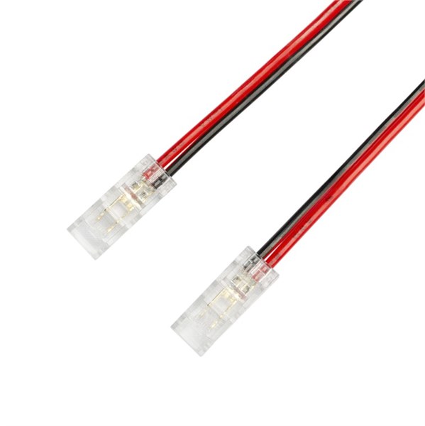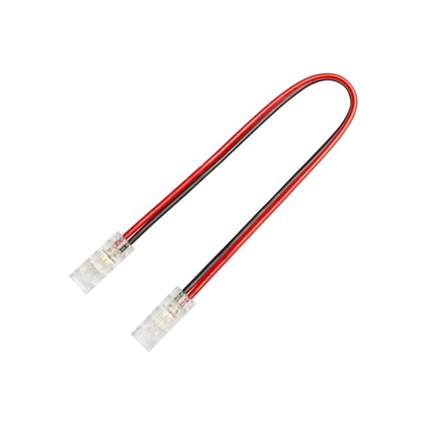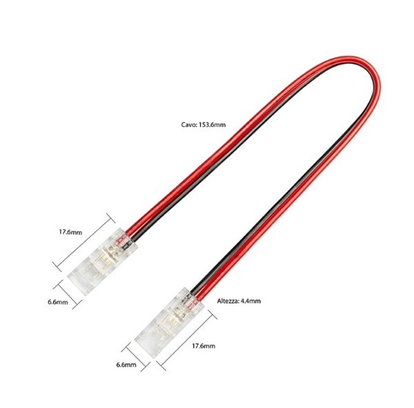 Pacco 10pz - connettore trasparente doppio per strip led ip20 da 5mm con cavo 150mm - 20awg rosso-nero - 3-24v max.3,5a - per strip led smd/cob - garanzia 2 anni