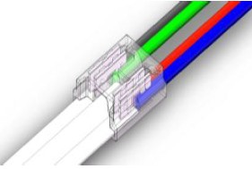 Connettore trasparente per strip led cob rgb ip20 da 10mm con cavo l.15cm 22awg - 4a