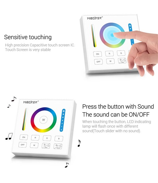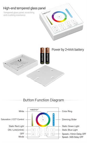 Dimmer touch da parete rgb+cct 1 zone - 2.4ghz rf - 86x86x19mm - distanza 30mt 3v - 2xaaa ministilo (non incluse) - garanzia 2 anni - b0