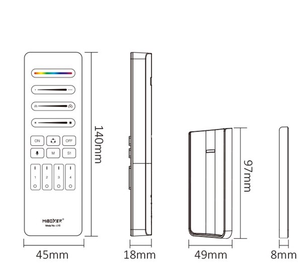 Telecomando magnetico nero in rf monocolore/rgb/rgb+w 4 zone - 2.4ghz - compatibile con controller digitale avspiw5-4 - alimentazione batteria 3v(2xaaa non incluse) - garanzia 2 anni - c10