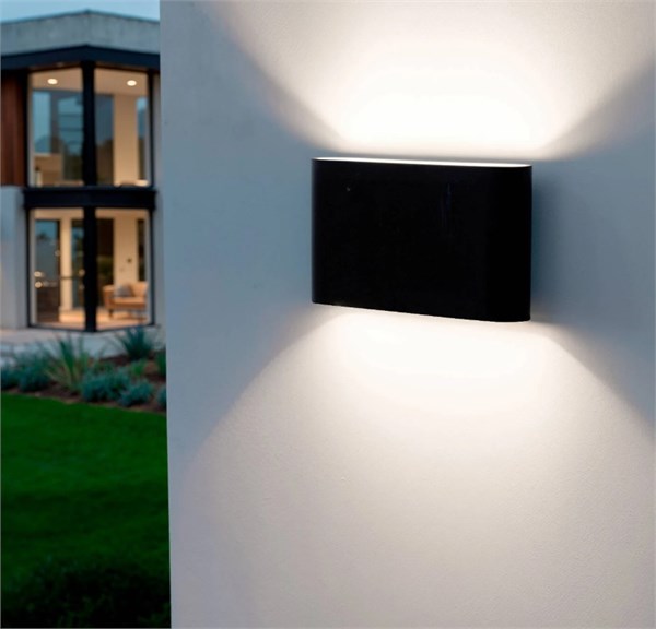 Applique up & down da parete in alluminio nero 12w natural 4000k 220-240vac 1200lm ip65 ik08 cri>80 175x90x30mm - garanzia 3 anni