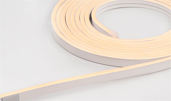 Led flex neon 0612 flat ip65 (estruso) side view 4000k 10w/mt 24v 320lm/mt 1led/cut cri>80 06x12mm 5mt - biadesivo 3m vhb - uv resistant - garanzia 2 anni