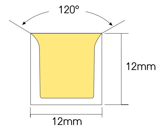 Led flex neon 1212 flat ip65 (estruso) side view 4000k 15w/mt 24v 1050lm/mt 120° cri>80 1led/cut 12x12mm 10mt - doppia alimentazione cavi 0,5mt - garanzia 2 anni