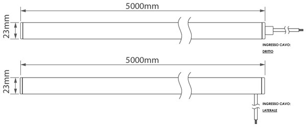 Led flex neon d23 round ip65 - free cutting - 360° 4000k 14,4w/mt 24v 1008lm/mt cri>90 ø23mm 5mt - garanzia 2 anni - lunghezza massima 5mt