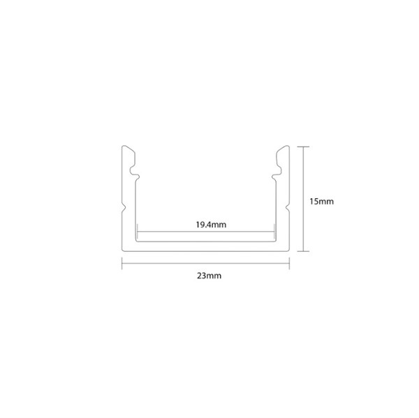 Profilo in alluminio da appoggio largo con cover opaca 23x15x3000mm - per strip con larghezza max 19mm - dissipazione max. 32w/mt - kit tappi cod. av8661xiaa/av8662xiaa e kit ganci cod. av8667xiaa - ordine minimo 10pz