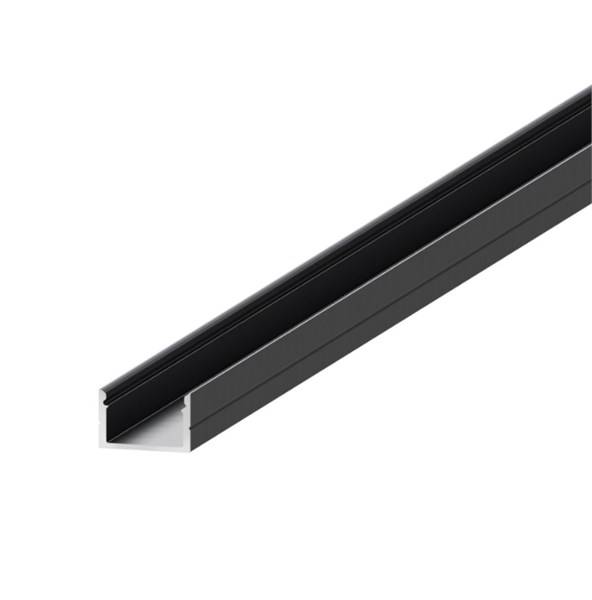 Profilo in alluminio da appoggio largo nero con cover opaca 23x15x2000mm - per strip con larghezza max 19mm - dissipazione max. 36w/mt - kit tappi cod. av8665xiaa/av8666xiaa e kit ganci cod. av8669xiaa - ordine minimo 10pz