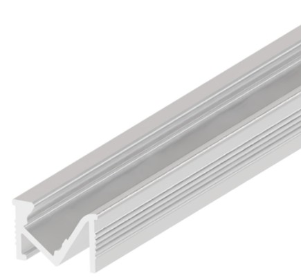 Profilo in alluminio da incasso ottica inclinata con cover opaca 18x10,5x2000mm - per strip con larghezza max 7mm - dissipazione max. 15w/mt