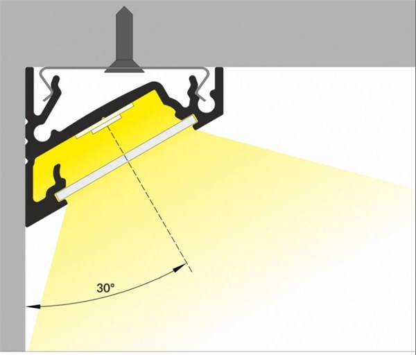 Profilo in alluminio nero angolare 30°/60° con cover opaca f 75% 24x19,4x2000mm - per strip con larghezza max 14mm - dissipazione max. 24w/mt
