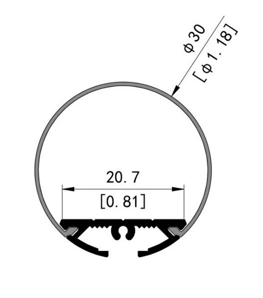 Profilo in alluminio rotondo con cover opaca curva ø30x3000mm - per strip con larghezza max 20mm - dissipazione max - - kit a sospensione non incluso cod. av8449xiaa - tappi non inclusi cod. av8450xiaa