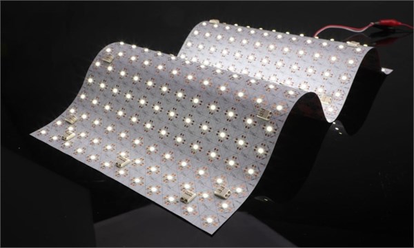 Foglio led flessibile 480x240x1mm 288 led 10w 24v ip20 3000k 1190lm/foglio - 120° cri>80 - ideale per retroilluminazione backlight - taglio ogni chip 20x20mm - dimmerabile pwm - max. 23 fogli collegabili - connettore xh 3a/36v - biadesivo 3m - garanzia 3 anni