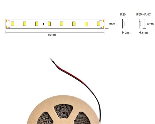 Strip led flex 160led/mt 2835 ip20 4000k 12w/mt 24v 1280lm/mt cri>95 - 5000x8mm - biadesivo 3m 300lse - garanzia 3 anni