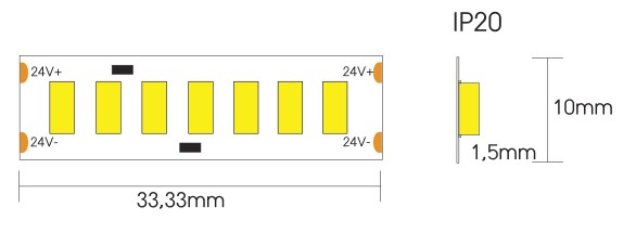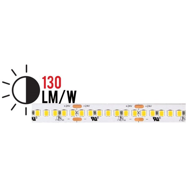 Strip led flex 210led/mt 2835 ip20 warm 2700k 19,2w/mt 24v 2500lm/mt (130lm/w) cri>80 5000x10mm - biadesivo 3m - garanzia 3 anni