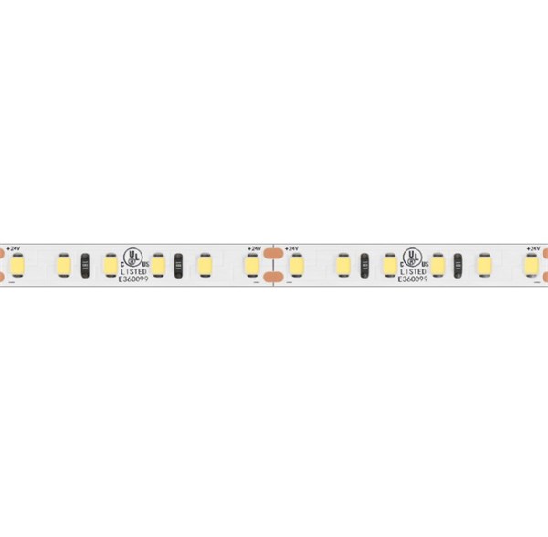 Strip led flex 120led/mt 2835 ip20 warm 2700k 9,6w/mt 24v 960lm/mt cri>90 5000x8mm - biadesivo 3m - garanzia 3 anni
