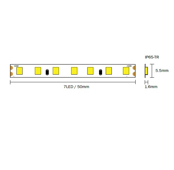 Strip led flex 140led/mt 2835 ip65-tr natural 4000k 9,6w/mt 24v 1420lm/mt cri>80 5000x5,5mm - biadesivo 3m - garanzia 3 anni