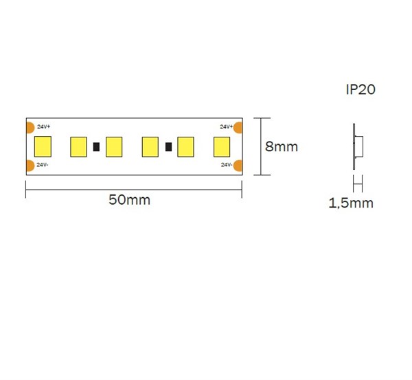 Strip led flex 120led/mt 2835 ip20 cool 6000k 9,6w/mt 24v 960lm/mt cri>90 5000x8mm - biadesivo 3m - garanzia 3 anni