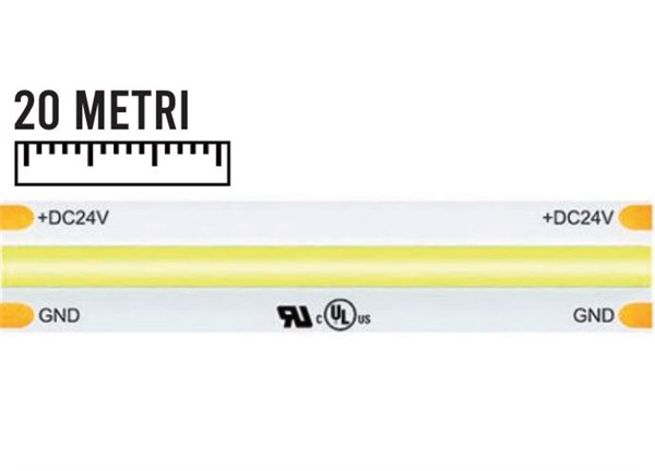 Strip led flex cob solderless ip20 20mt natural 4000k 10w/mt 24v 1050lm/mt 160° cri>90 20000x8mm - biadesivo 3m - garanzia 3 anni - senza saldatura