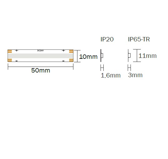 Strip led flex cob ip65-tr rgb 15w/mt 24v 160° 5000x10,5mm - biadesivo 3m - taglio 50mm - garanzia 3 anni