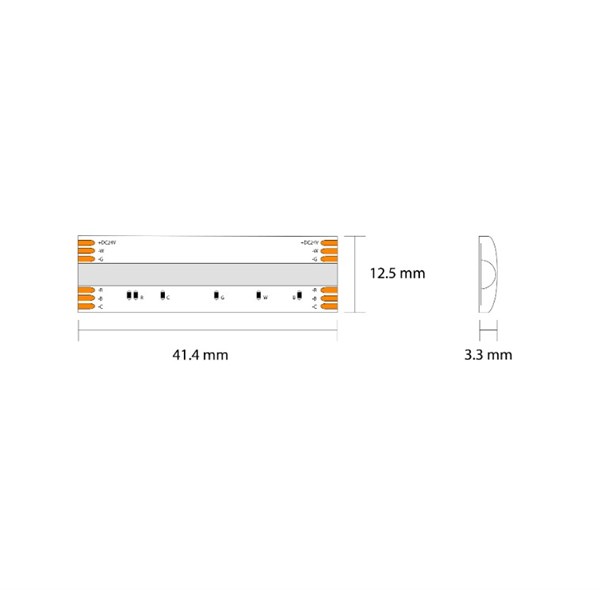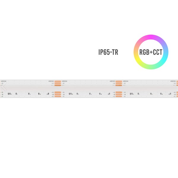 Strip led flex cob ip65-tr rgb+cct 24w/mt 24v 160° 720lm/mt(bianco) - 5000x12,5x3,3mm - biadesivo 3m - taglio 41,4mm - garanzia 3 anni