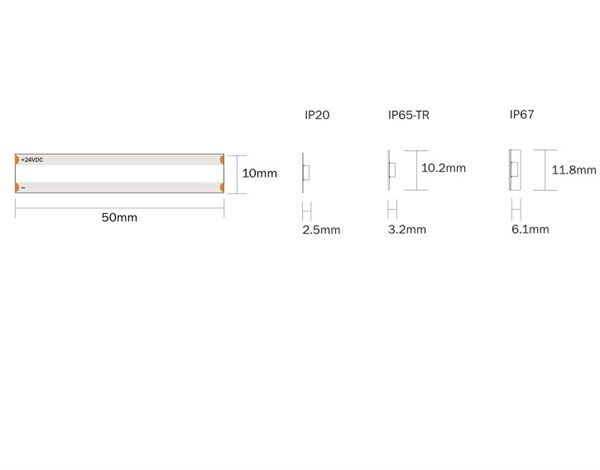 Strip led flex fcob (csp) ip67 warm 3000k 18w/mt 24v 1820lm/mt 120° cri>90 5000x11,8x6,1mm - biadesivo 3m - garanzia 3 anni