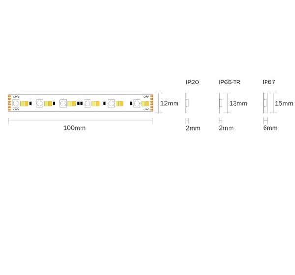 Strip led flex 120led/mt 5050 + 240led/mt 2835 ip65-tr rgb+cct 28,8w/mt 24v 1580lm/mt cri>80 5000x12mm - certificata e marchiata ul - biadesivo 3m - garanzia 3 anni