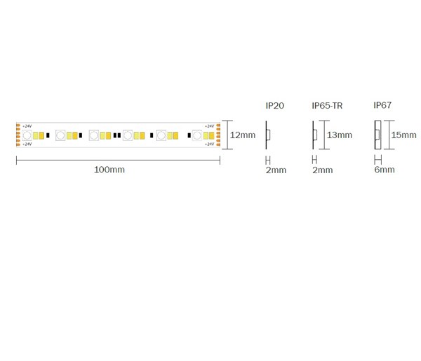 Strip led flex 60led/mt 5050 + 120led/mt 2835 ip67 silicone tube rgb+cct 28,8w/mt 24v 1600lm/mt (solo bianco) cri>80 5000x15mm - biadesivo 3m - garanzia 3 anni